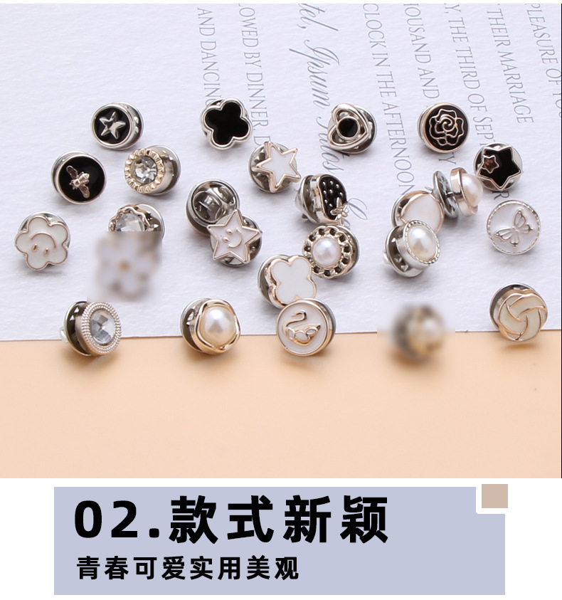 2分鐘前免钉防走光扣 衬衫开衫领口固定調節鈕扣 低领装饰胸针 別針 可拆卸隐形扣子 - 優惠價10入組799